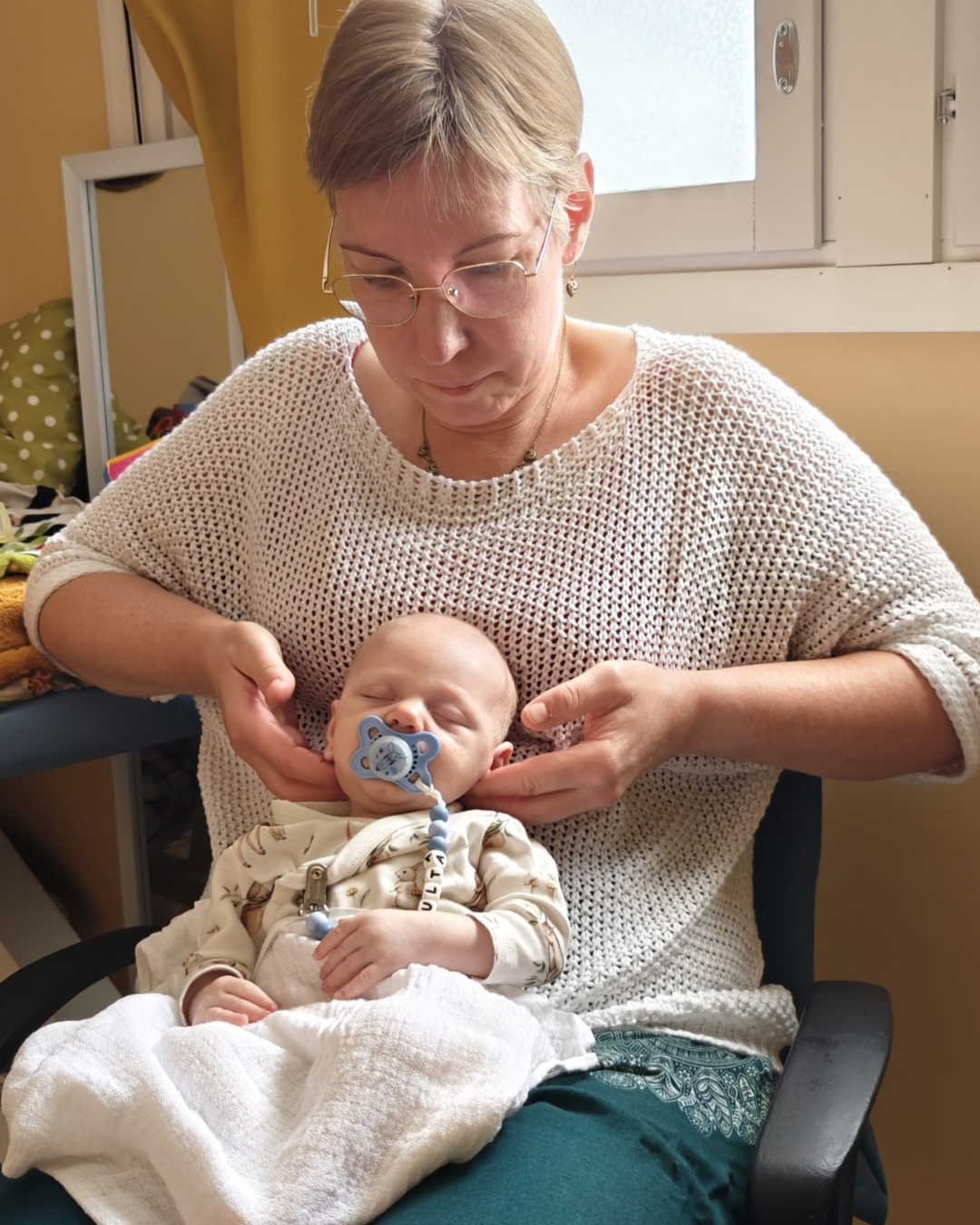 Kosketukseni on aina tukeva, muttei painava. En koskaan käytä voimaa, en naksauttele, enkä tee mitään, mikä voisi aiheuttaa kipua. Hoito ei kutita, purista tai tunnu epämukavalta. Käytän tarvittaessa vain oliiviöljyä, ja hoito on lempeää ja kehoa tukevaa – juuri sen verran kuin lapsi itse sallii, tarvitsee tai antaa.